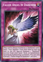 (Esta carta é sempre tratada como uma carta "Darklord"). Envie 1 monstro Fairy da sua mão ou do campo virado para cima para o cemitério; Special Summon 1 monstro "Darklord" da sua mão, deck ou banimento, ignorando suas condições de invocação. Você só pode ativar 1 "Fallen Angel in Darkness" por turno.